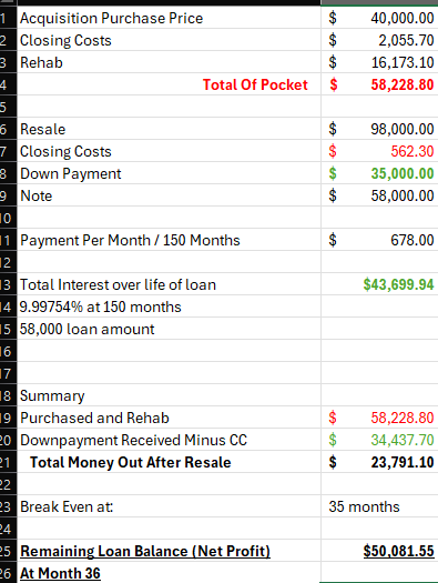 A great creative financing deal that I just finished up selling. Bought it from the seller with a 0% loan and a piggy back second. Resold via seller…