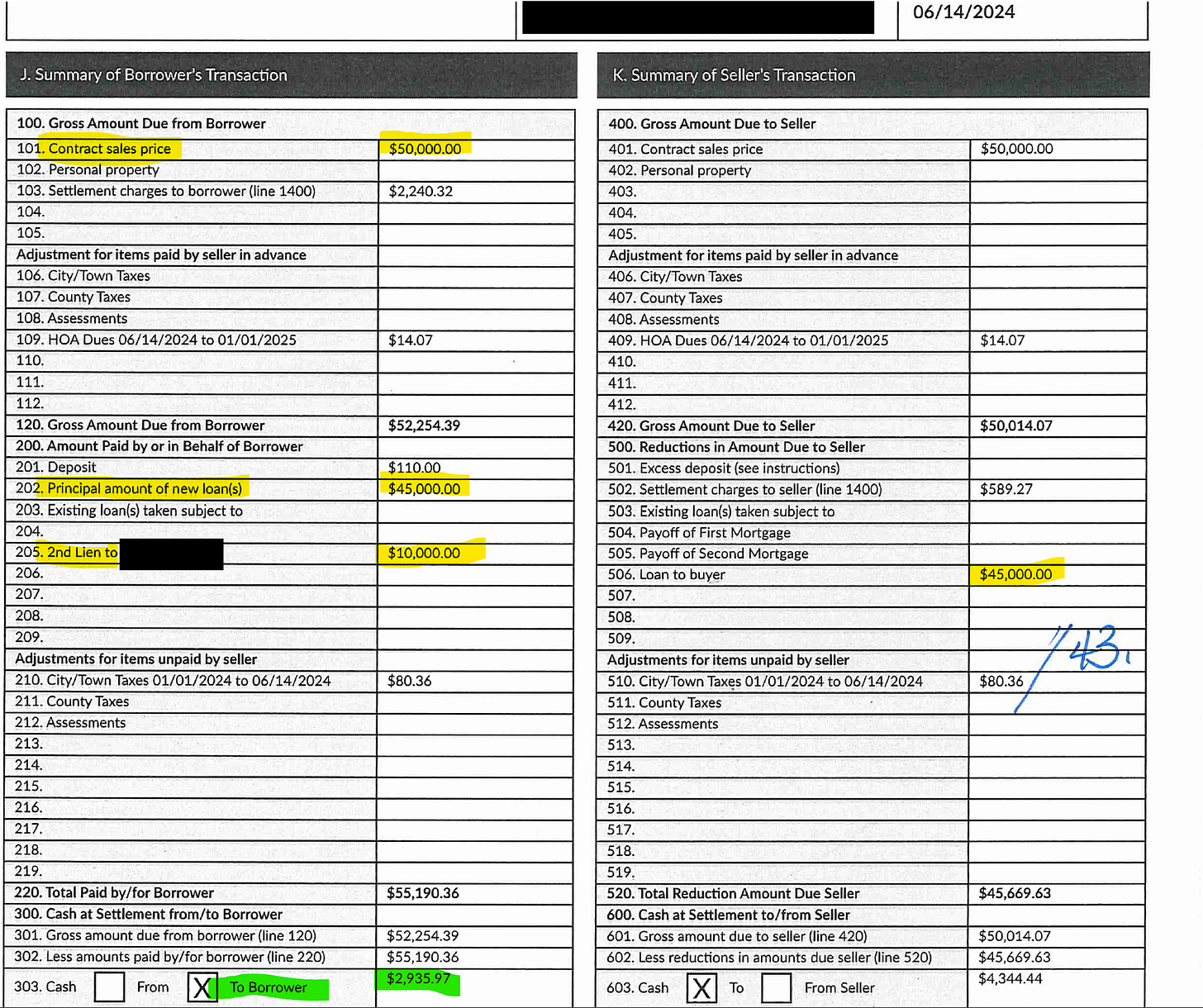 As you can see from above, the two loan ares shown on the closing statement. I actually received money back at closing, I brought nothing to the table. The deal was completely funded with no money out of my pocket. I now have 5 months to get this thing resold.