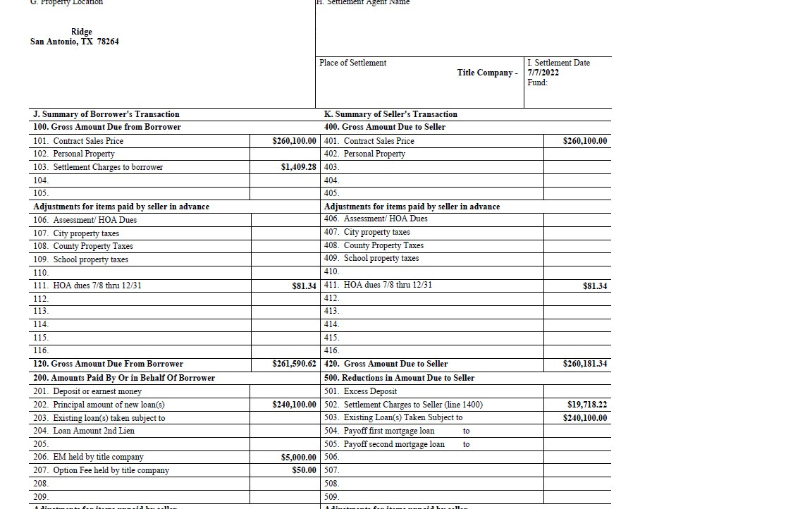 All in all we sold the property for $260,100 with $20,000 down. The loan balance was $240,100 at 5.074% interest for 30 years which brings the principal and interest payment to exactly $1,300 per month. As we are the bank, we are not responsible for taxes or insurance. $1,300 per month is what I am receiving for the next 30 years.